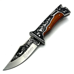 Columbia Baba Çakı Gravür İşlemeli At Desenli Atlı Av Bıçak Çakısı A-3189-A