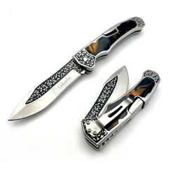 Columbia Epoksi Kabzalı Desenli Çakı İşlemeli Sırttan Kilitli Çakı A-3154-B