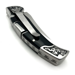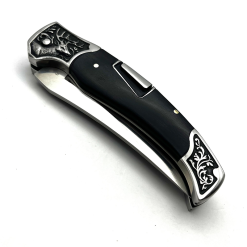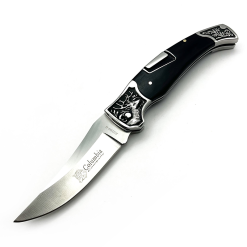 Columbia Geyik İşlemeli Gravürlü Abanoz Ağacı Kabzalı Sırttan Kilitli Çakı A-3209-B
