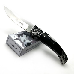 Columbia Geyik İşlemeli Gravürlü Abanoz Ağacı Kabzalı Sırttan Kilitli Çakı A-3209-B
