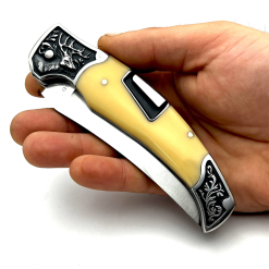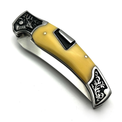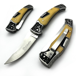 Columbia Geyik İşlemeli Gravürlü Sedef Kabzalı Sırttan Kilitli Çakı A-3209-D