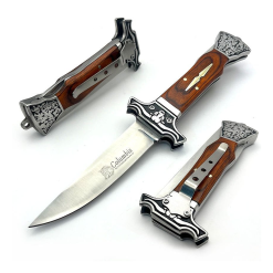 Columbia Gül Ağacı Kabzalı Öküzbaş Çakı İşlemeli El Korumalı Sırttan Kilitli Çakı MA123-A