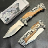 Columbia Ahşap Kabzalı Desenli Çakı İşlemeli Sırttan Kilitli Çakı B-3157-D