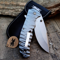 4. Gri Titanyum Sap: Çakının sapı, gri titanyumdan yapılmıştır. Bu malzeme, çakının tutuşunu sağlamlaştırır ve kullanıcıya rahat bir kavrama sunar. Ayrıca, titanyumun dayanıklılığı sayesinde çakı uzun süreli kullanıma dayanıklı olur ve çeşitli koşullara uyum sağlar.