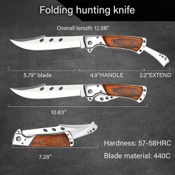 - [UZUN BIÇAK TASARIMI] – Bu cep bıçağının bıçağı sapından daha uzundur, 5,6 inç uzunluğundadır, benzersiz tasarımı sıradan katlanır bıçaklardan farklıdır, sağlam ve kaliteli bir yapıya sahiptir. 440C Çelik bıçak, aşınma olmadan uzun süreli kullanım, iyi pas direnci ve yüksek dayanıklılık sağlar.