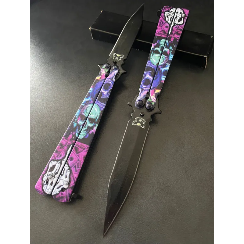 Kelebek Çakı Sallamalık Kurukafa Baskılı
