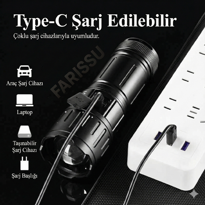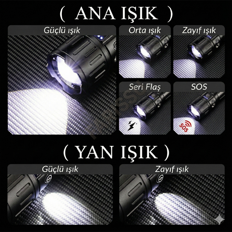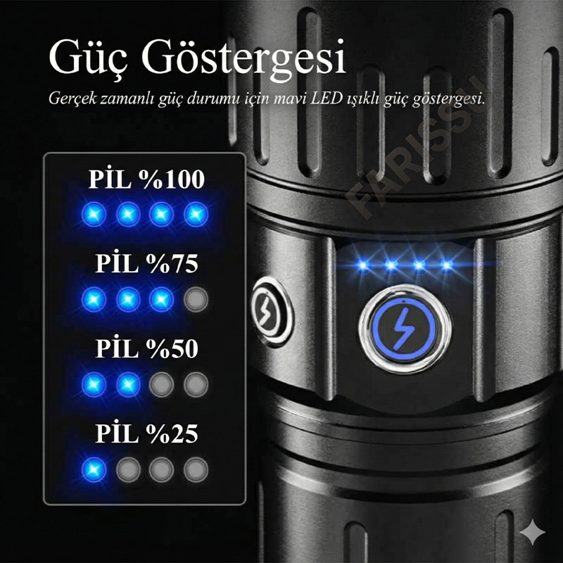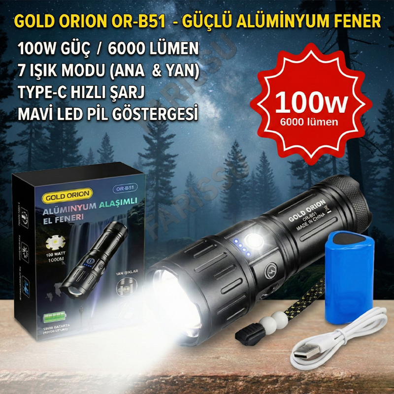 Gold Orion OR-B51 100 Watt Şarjlı El Feneri Taktik El Feneri Güçlü Aydınlatma Dayanıklı Tasarım 6000 lümen